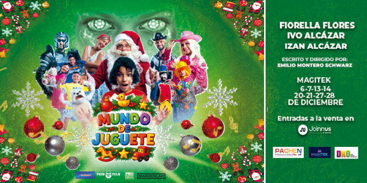 La magia de la Navidad llega este año con un formato nunca antes visto: MUNDO DE JUGUETE, el nuevo musical de Emilio Montero Schwarz, se estrena en el innovador espacio Magitech, donde el público vivirá una experiencia teatral inmersiva 360°, combinando proyecciones, efectos digitales, iluminación envolvente y música original creada especialmente para la obra. Mundo de Juguete lleva el concepto del teatro familiar a una nueva dimensión sensorial.