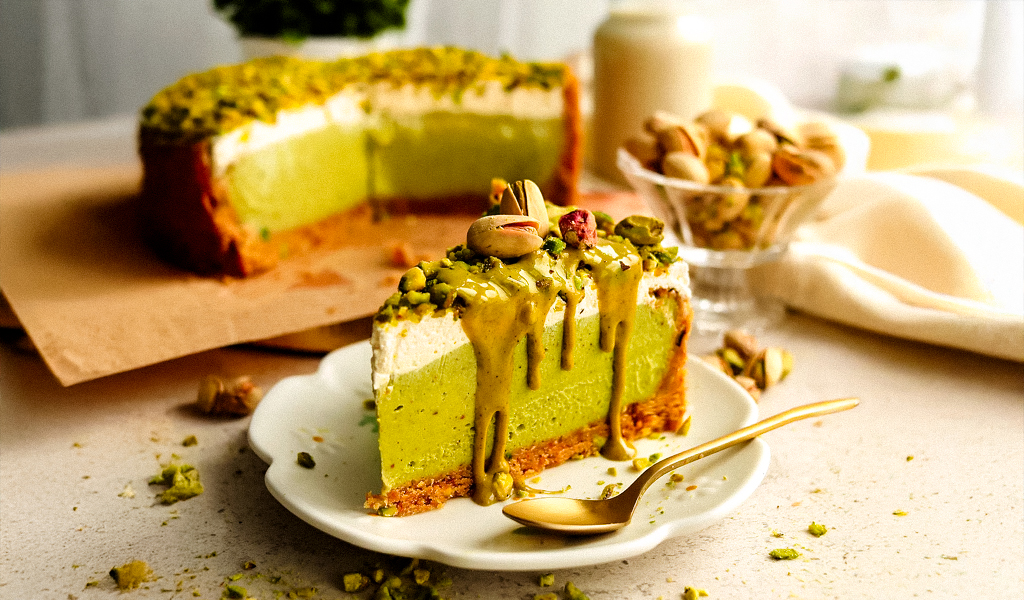 El pistacho dejó de ser ese sabor “exótico” que solo aparecía en heladerías italianas y hoy se luce en cheesecakes, croissants, tortas, mousses y hasta galletas rellenas. Su color verde intenso y su sabor ligeramente tostado lo han convertido en uno de los favoritos de la repostería actual.